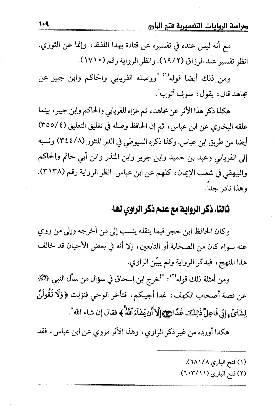 ومن ذلك أيضا قوله1 "ووصله الفريابي والحاكم وابن جبير عن مجاهد قال: يقول: سوف أتوب".