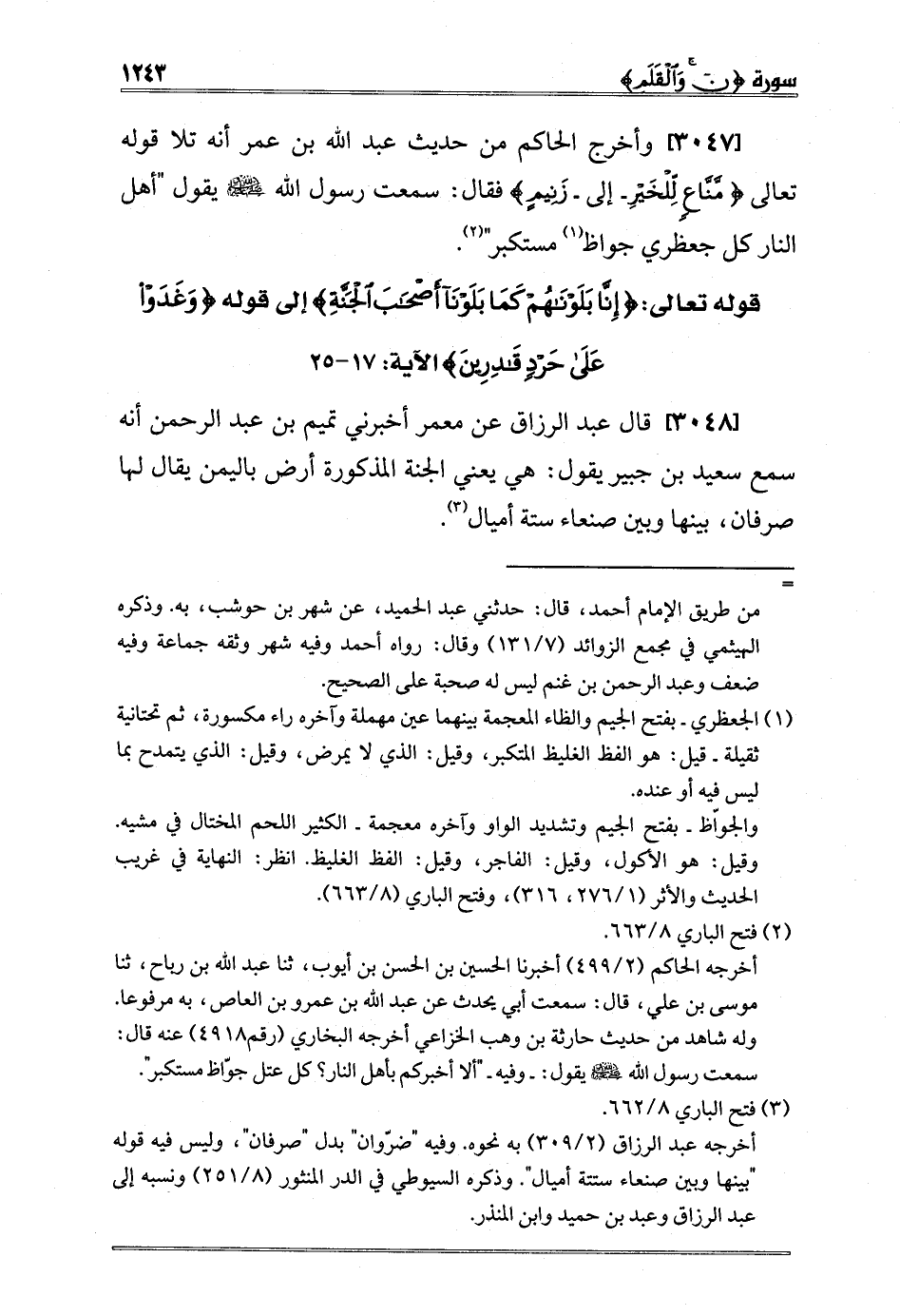 [3047] وأخرج الحاكم من حديث عبد الله بن عمر أنه تلا قوله تعالى {مَنَّاعٍ لِلْخَيْرِ - إلى - زَنِيمٍ} فقال: سمعت رسول الله صلى الله عليه وسلم يقول "أهل النار كل جعظري جواظ 1 مستكبر" 2.