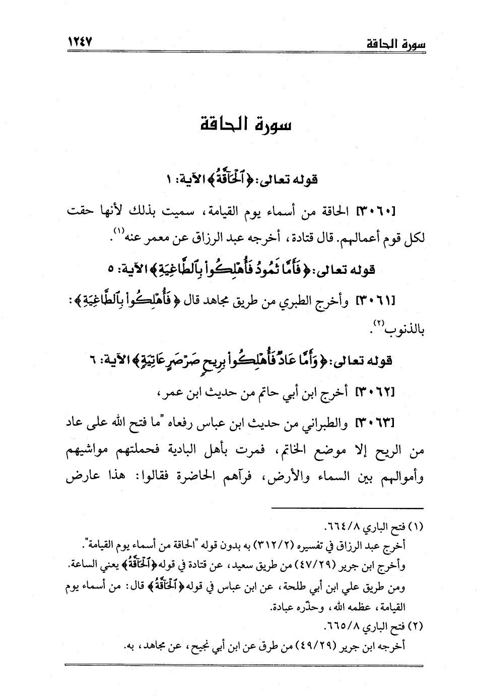 [3060] الحاقة من أسماء يوم القيامة، سميت بذلك لأنها حقت لكل قوم أعمالهم. قال قتادة، أخرجه عبد الرزاق عن معمر عنه1.