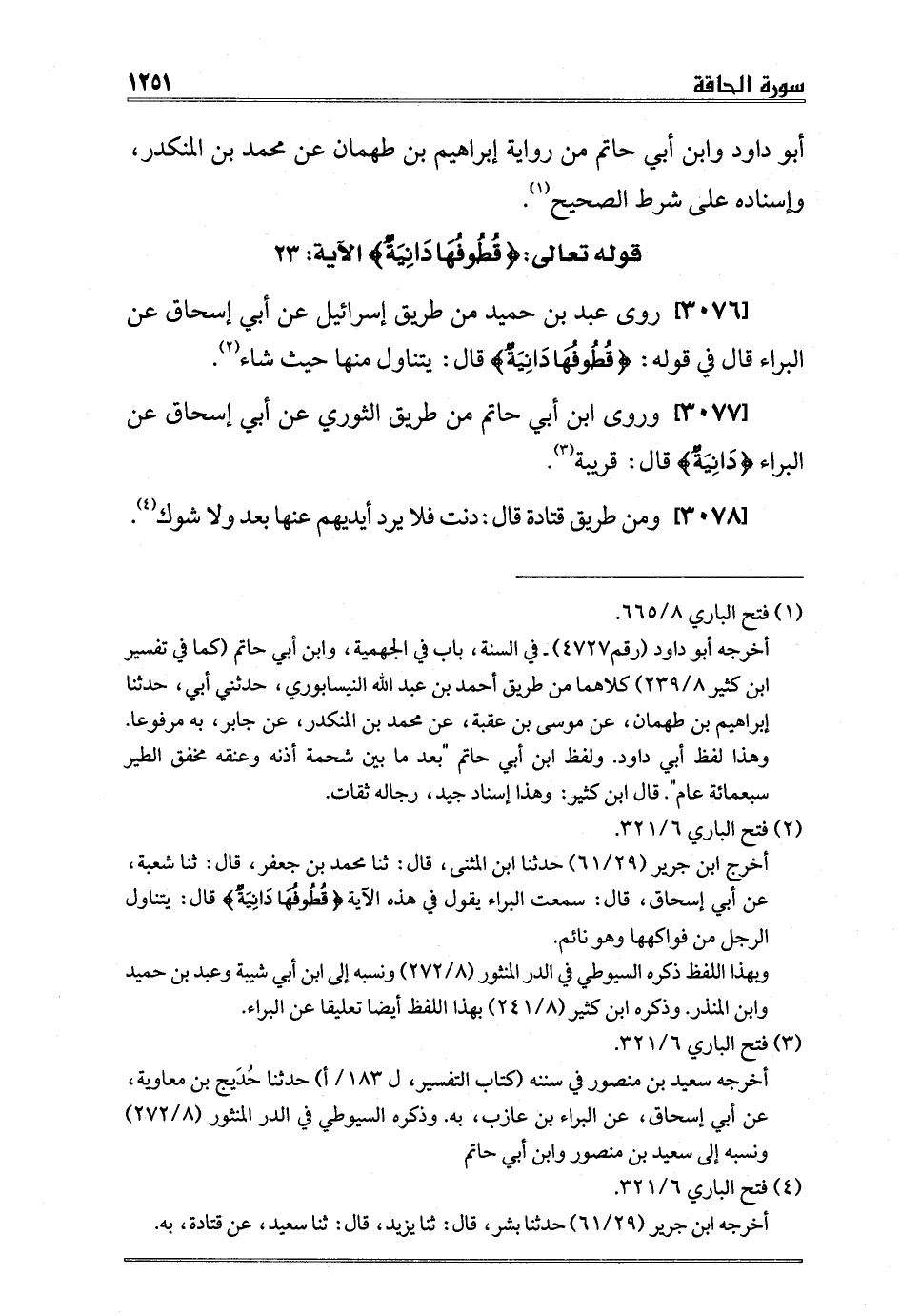 [3077] وروى ابن أبي حاتم من طريق الثوري عن أبي إسحاق عن البراء {دَانِيَةٌ} قال: قريبة 3.