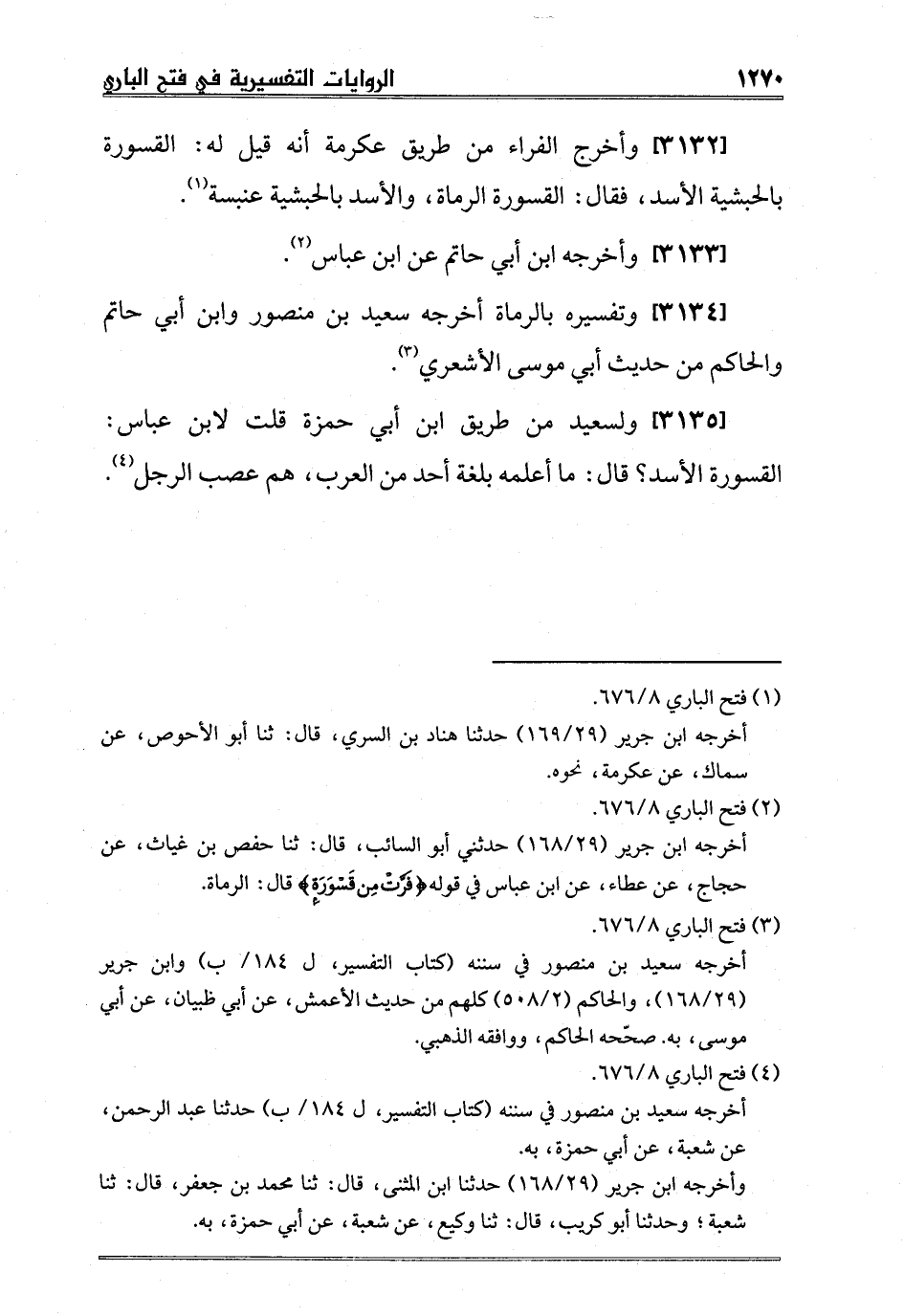 [3135] ولسعيد من طريق ابن أبي حمزة قلت لابن عباس: القسورة الأسد؟ قال: ما أعلمه بلغة أحد من العرب، هم عصب الرجل4.