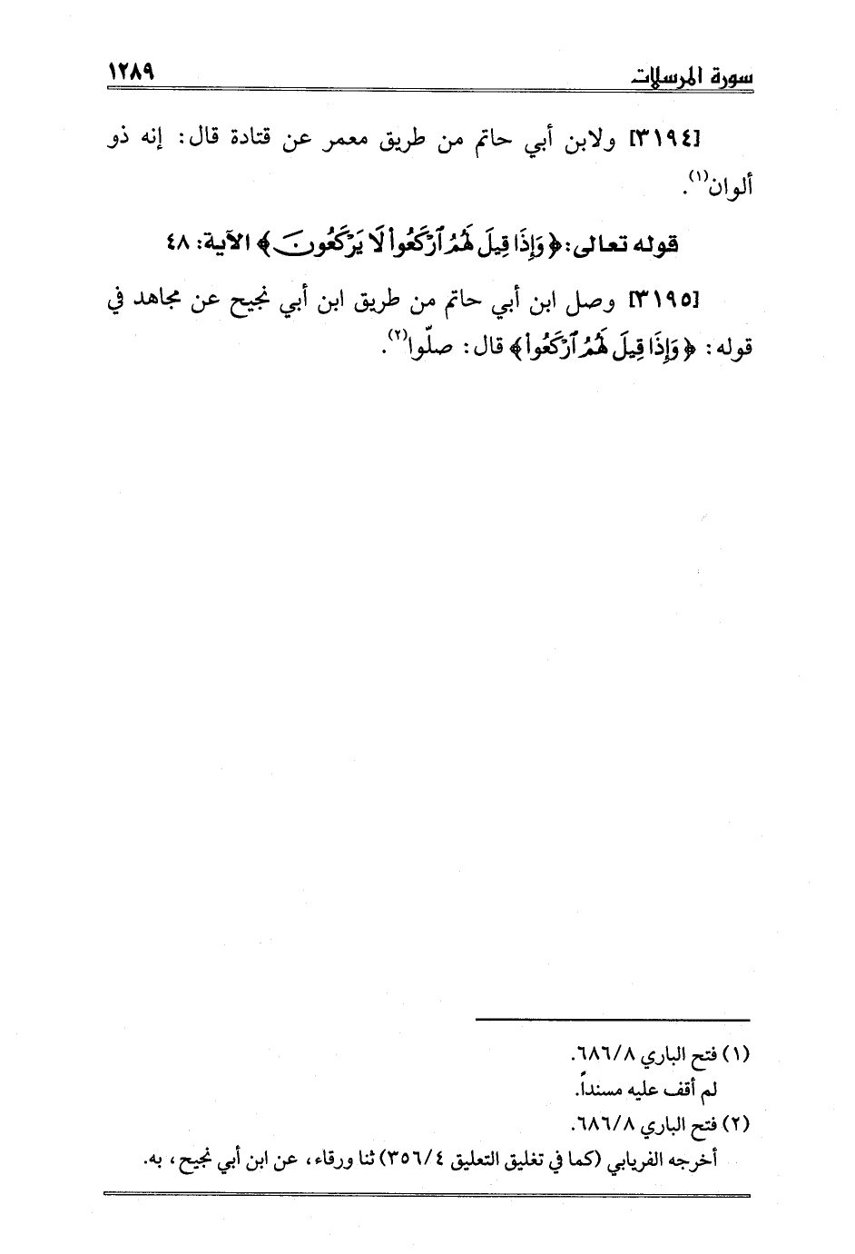 [3195] وصل ابن أبي حاتم من طريق ابن أبي نجيح عن مجاهد في قوله: {وَإِذَا قِيلَ لَهُمُ ارْكَعُوا} قال: صلّوا2.
