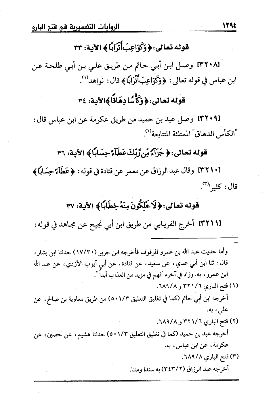 [3210] وقال عبد الرزاق عن معمر عن قتادة في قوله: {عَطَاءً حِسَاباً} قال: كثيرا 3.