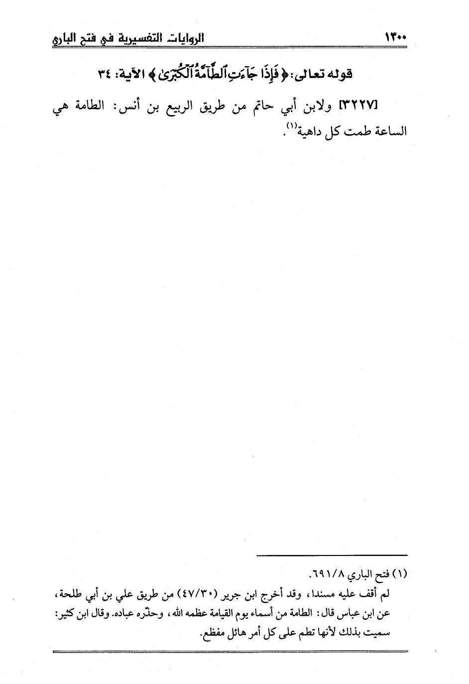 [3227] ولابن أبي حاتم من طريق الربيع بن أنس: الطامة هي الساعة طمت كل داهية1.