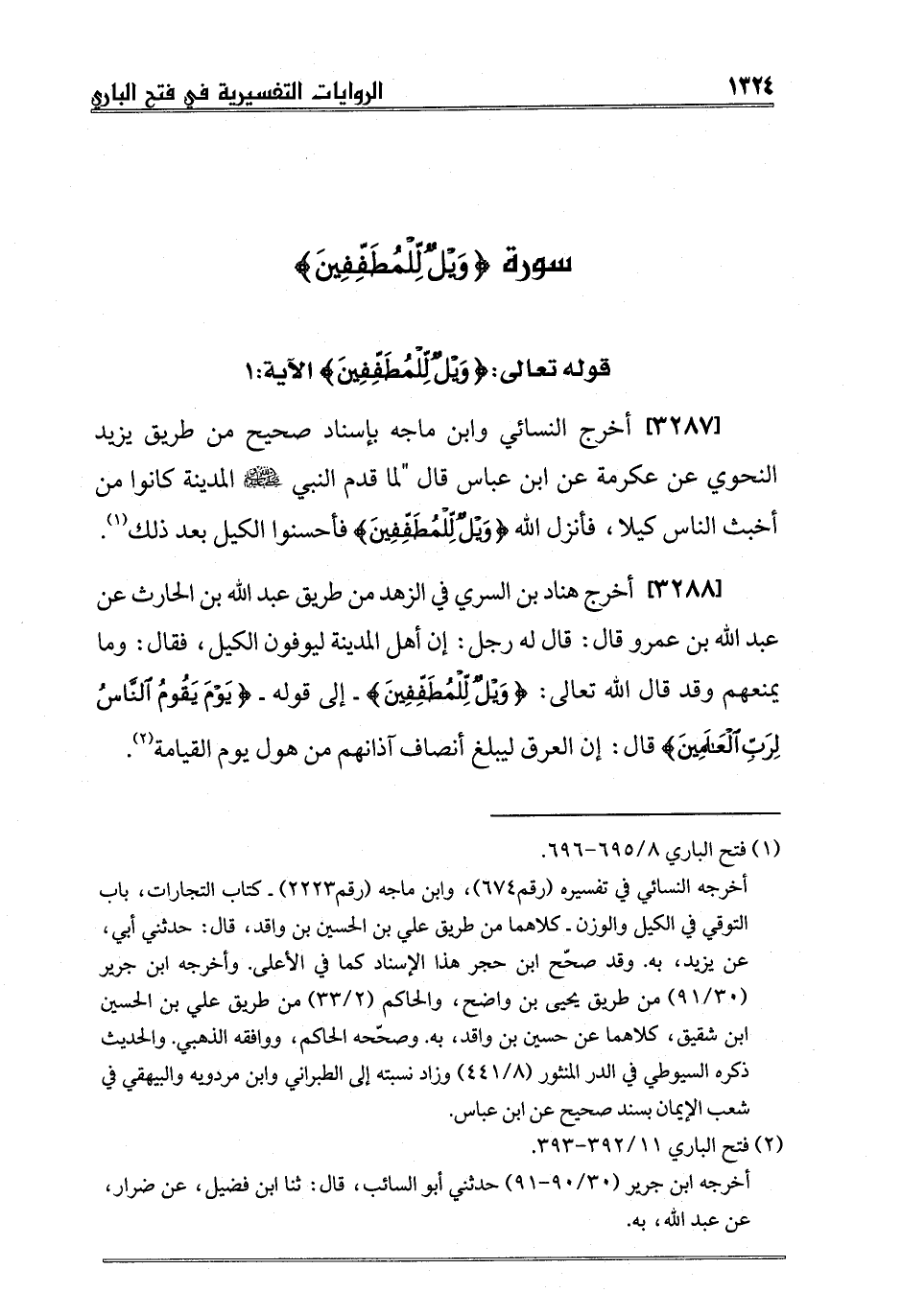 [3287] أخرج النسائي وابن ماجه بإسناد صحيح من طريق يزيد النحوي عن عكرمة عن ابن عباس قال "لما قدم النبي صلى الله عليه وسلم المدينة كانوا من أخبث الناس كيلا، فأنزل الله {وَيْلٌ لِلْمُطَفِّفِينَ} فأحسنوا الكيل بعد ذلك1.