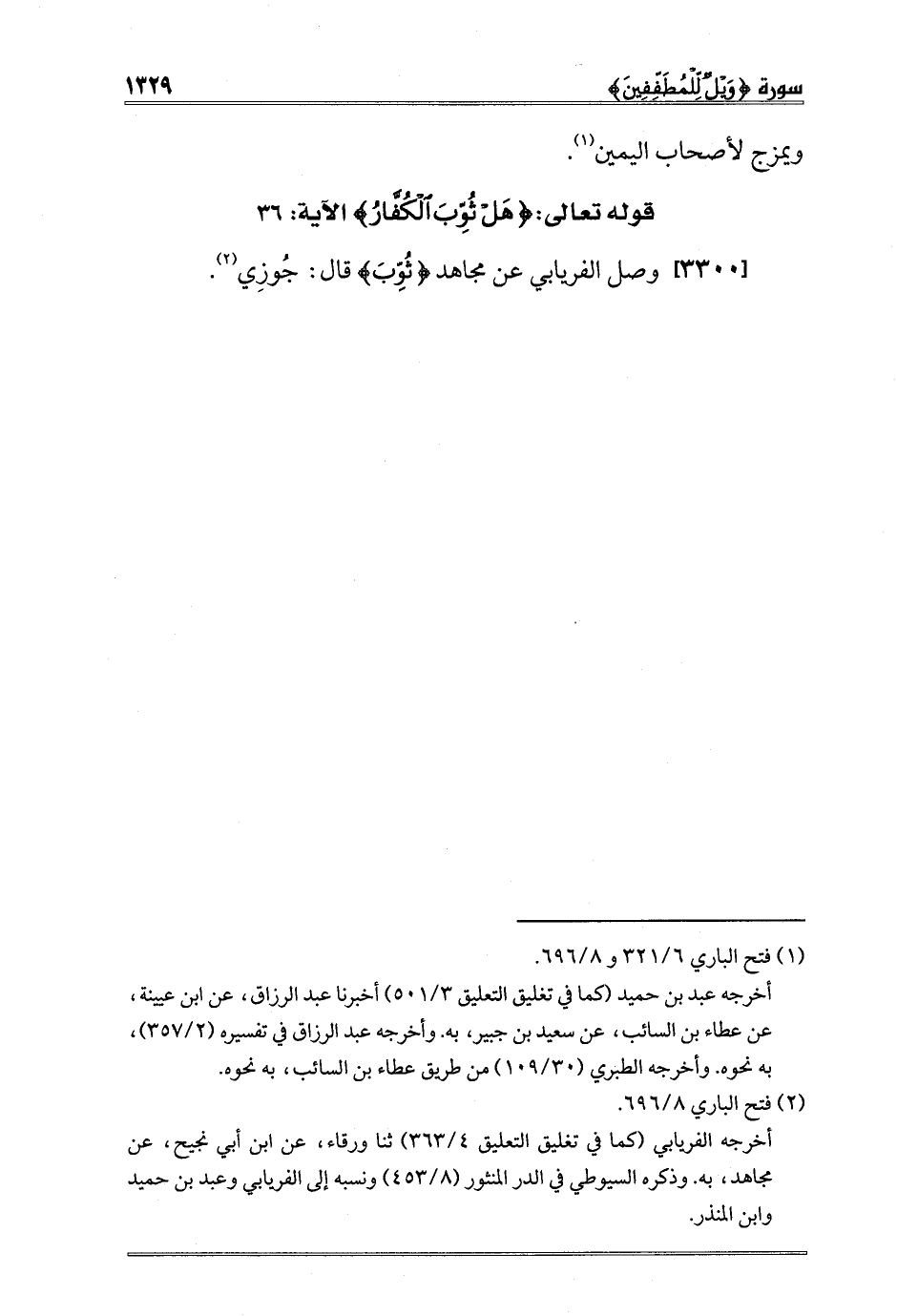 [3300] وصل الفريابي عن مجاهد {ثُوِّبَ} قال: جُوزِي2.