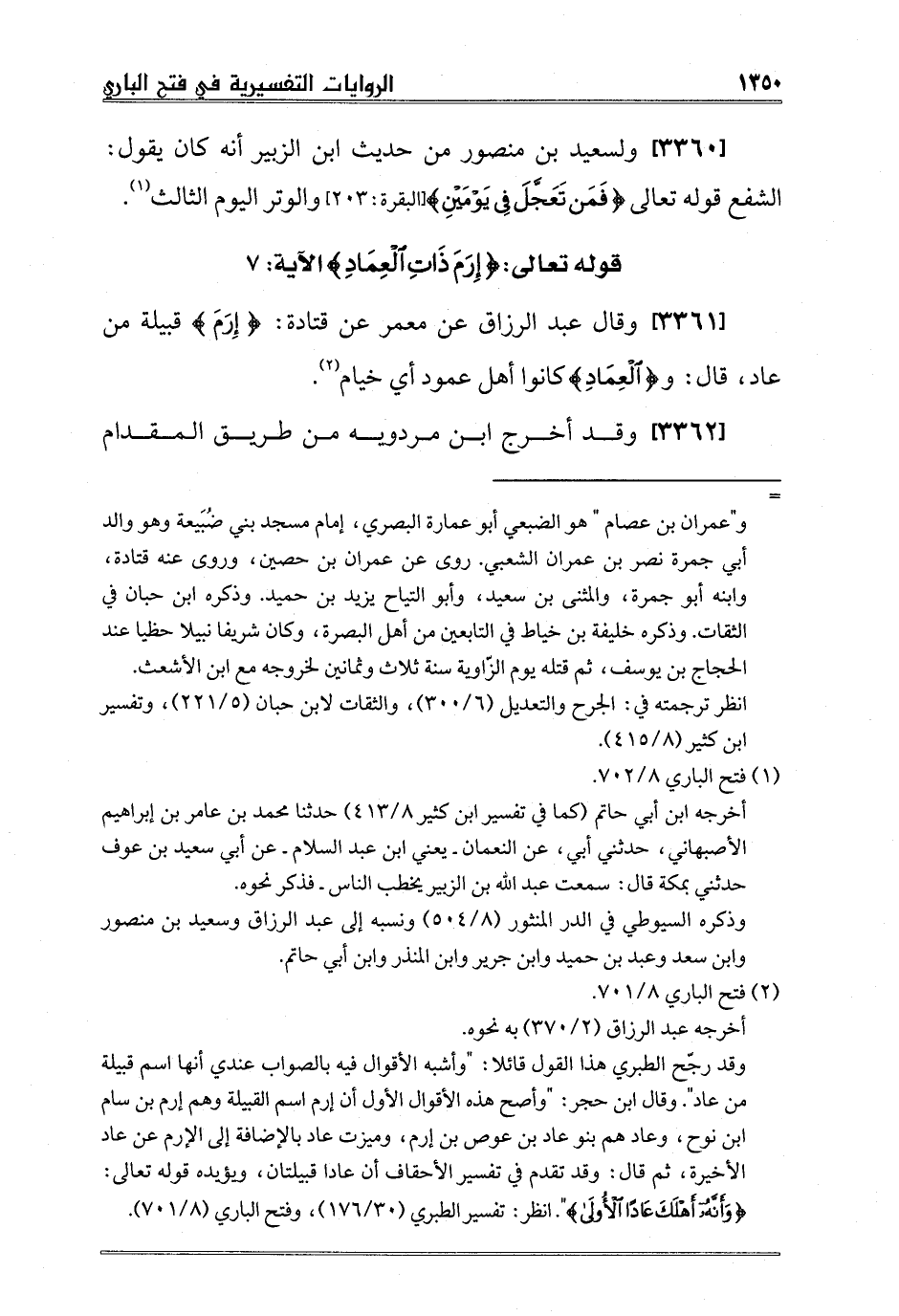 [3361] وقال عبد الرزاق عن معمر عن قتادة: {إِرَمَ} قبيلة من عاد، قال: و {الْعِمَادِ} كانوا أهل عمود أي خيام2.