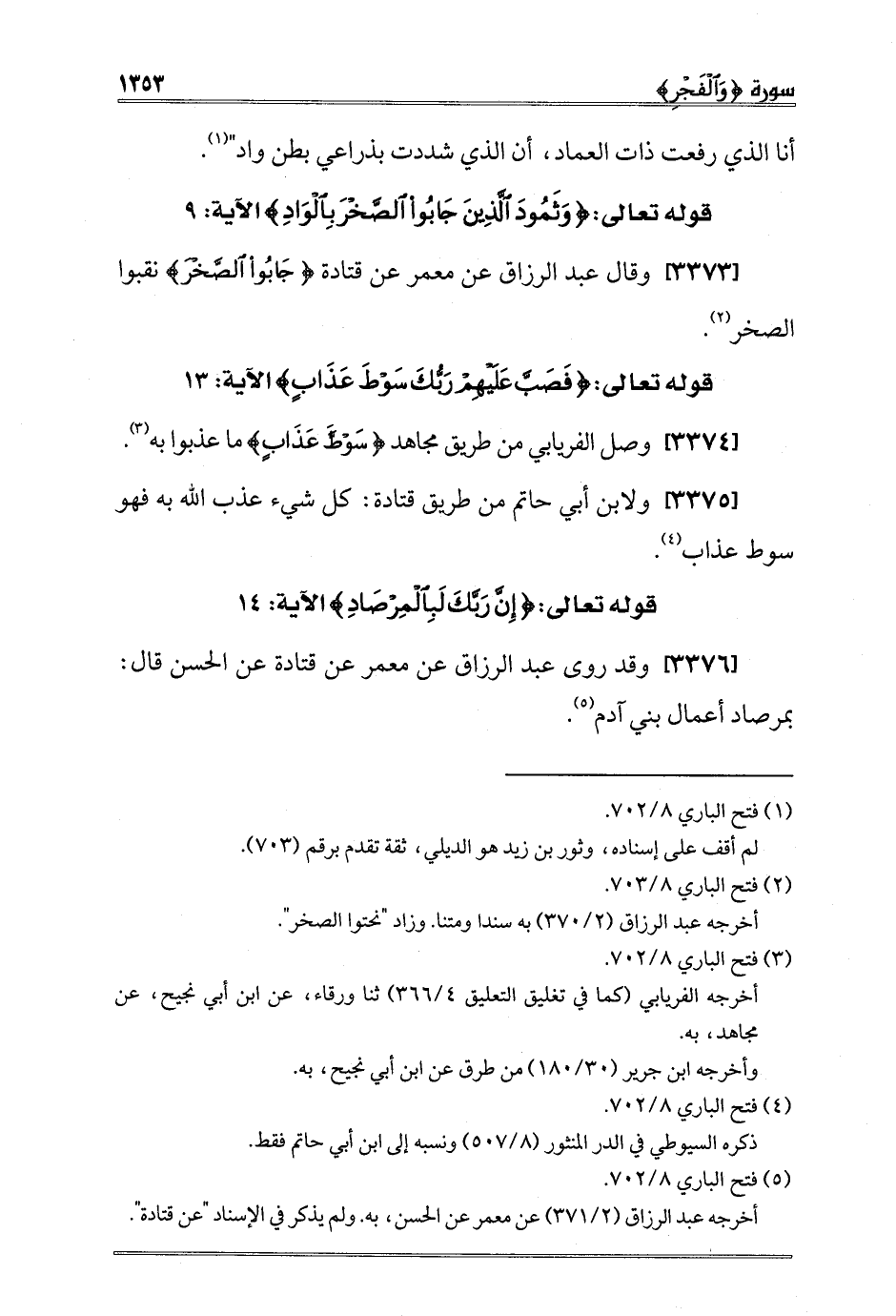 [3375] ولابن أبي حاتم من طريق قتادة: كل شيء عذب الله به فهو سوط عذاب4.