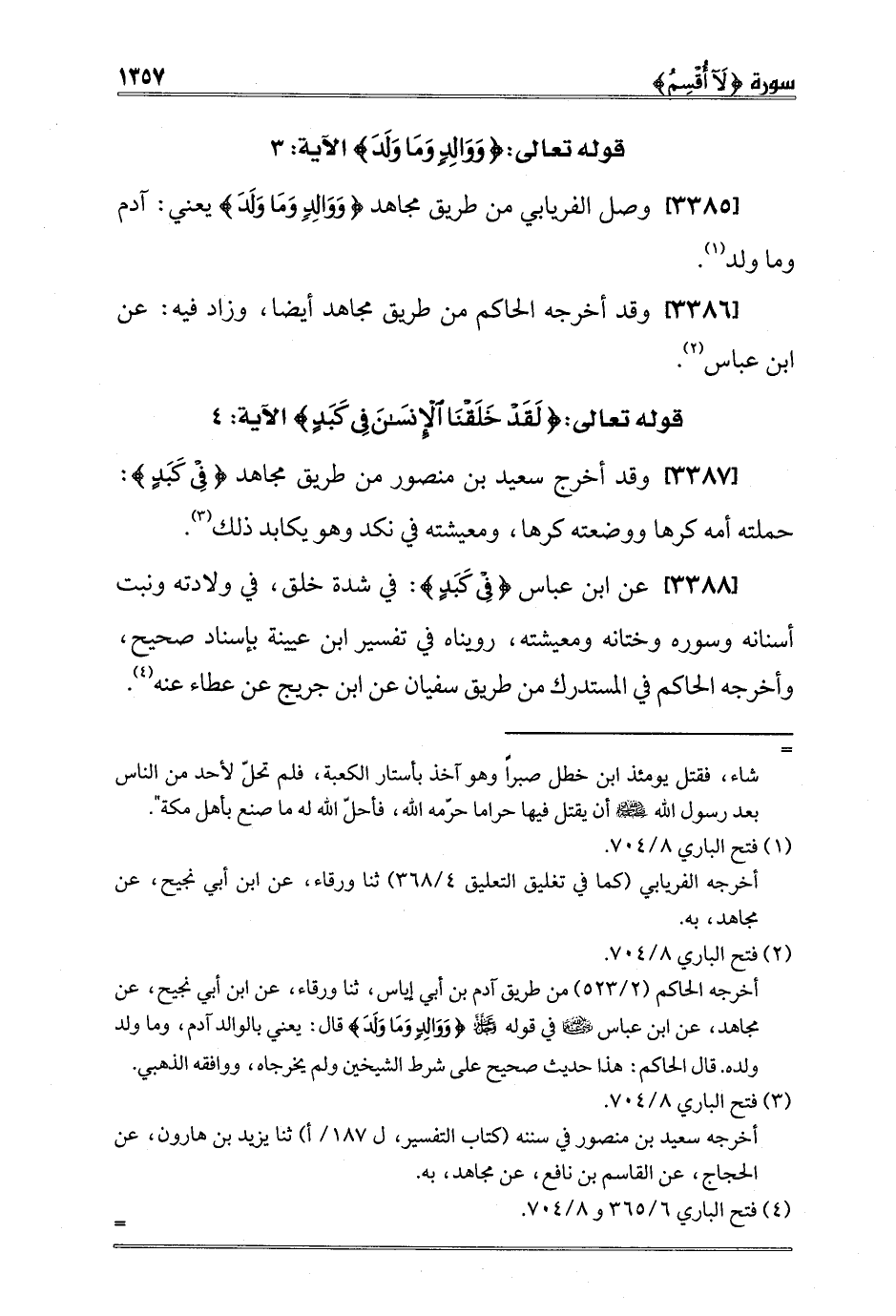 [3387] وقد أخرج سعيد بن منصور من طريق مجاهد {فِي كَبَدٍ} : حملته أمه كرها ووضعته كرها، ومعيشته في نكد وهو يكابد ذلك3.