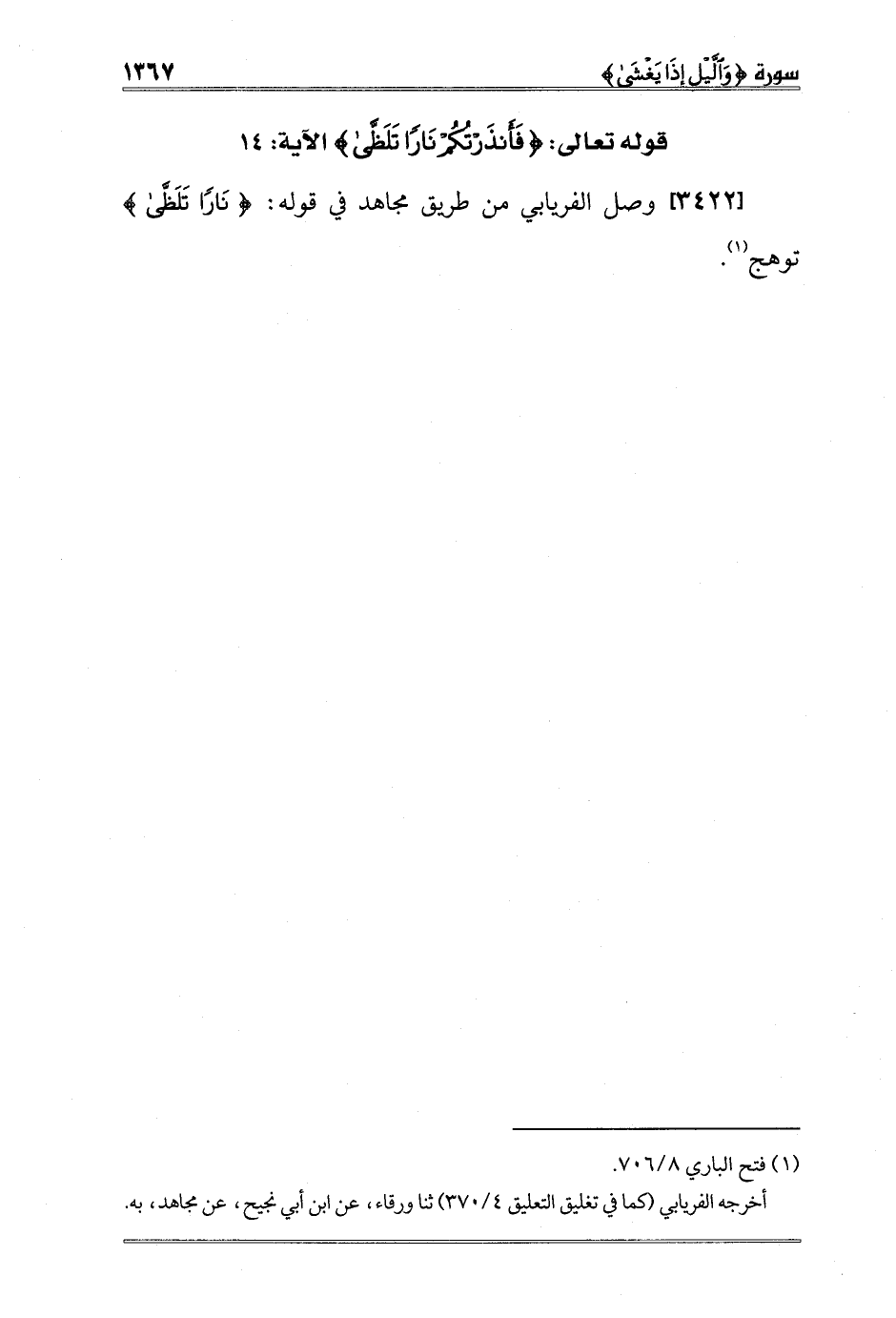 [3422] وصل الفريابي من طريق مجاهد في قوله: {نَاراً تَلَظَّى} توهج1.