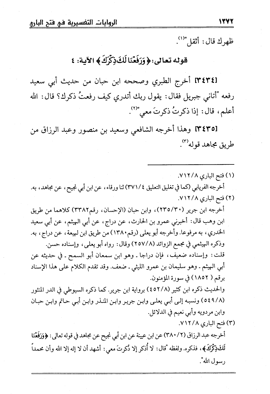 [3434] أخرج الطبري وصححه ابن حبان من حديث أبي سعيد رفعه "أتاني جبريل فقال: يقول ربك أتدري كيف رفعتُ ذكرك؟ قال: الله أعلم، قال: إذا ذكرتُ ذكرتَ معي" 2.