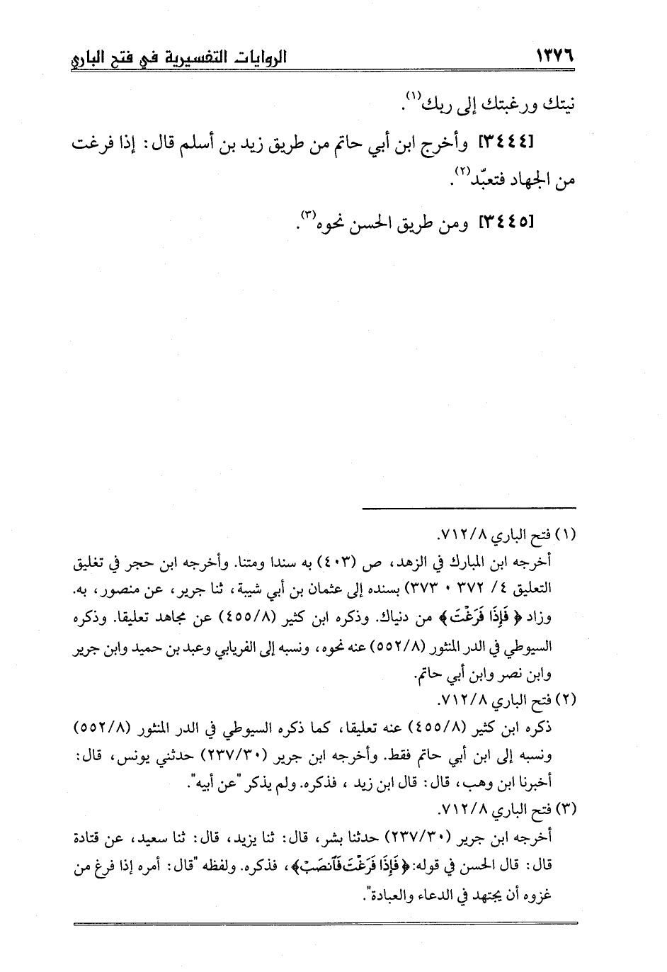 [3444] وأخرج ابن أبي حاتم من طريق زيد بن أسلم قال: إذا فرغت من الجهاد فتعبّد2.