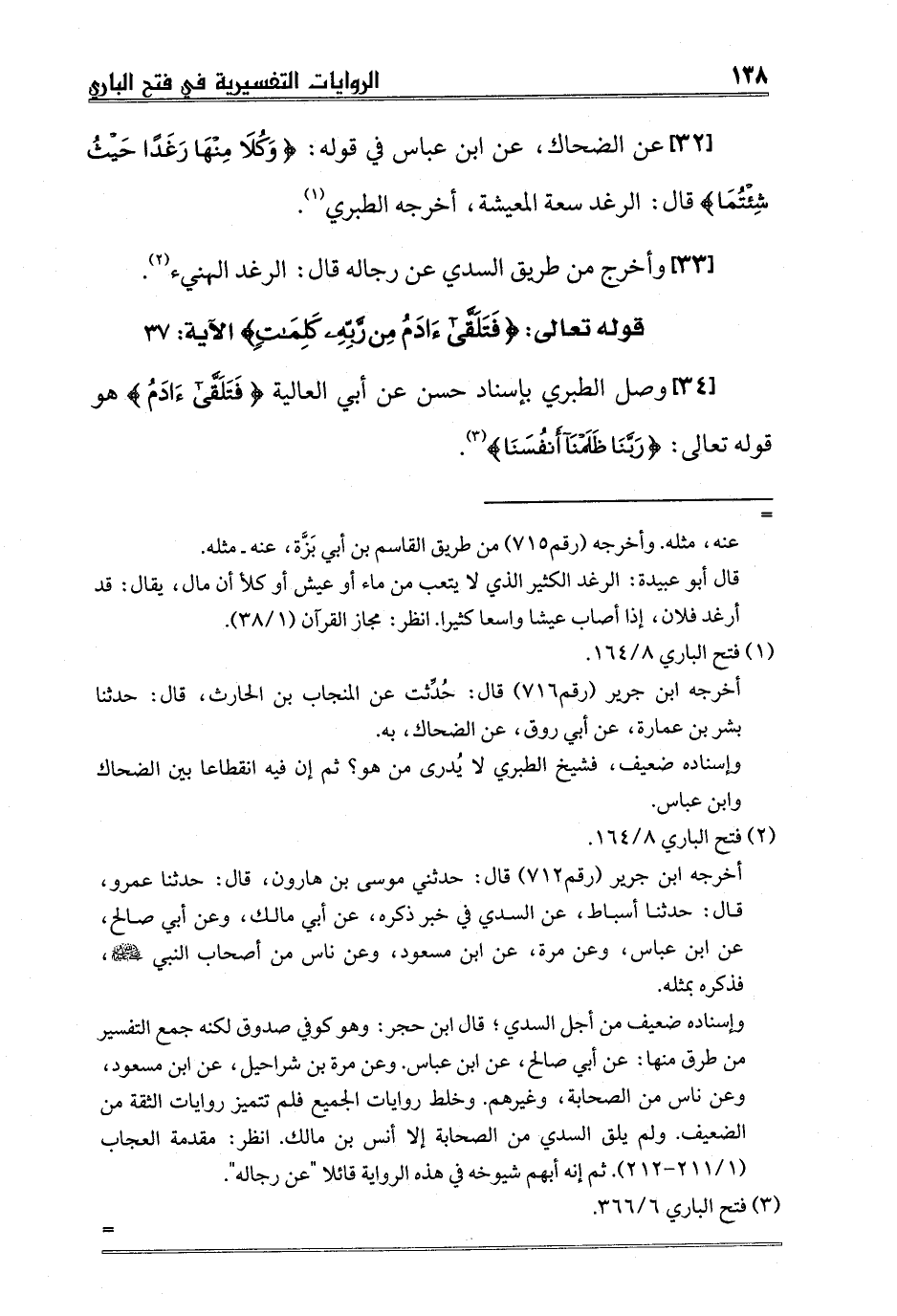 [34] وصل الطبري بإسناد حسن عن أبي العالية {فَتَلَقَّى آدَمُ} هو قوله تعالى: {رَبَّنَا ظَلَمْنَا أَنْفُسَنَا} 3.