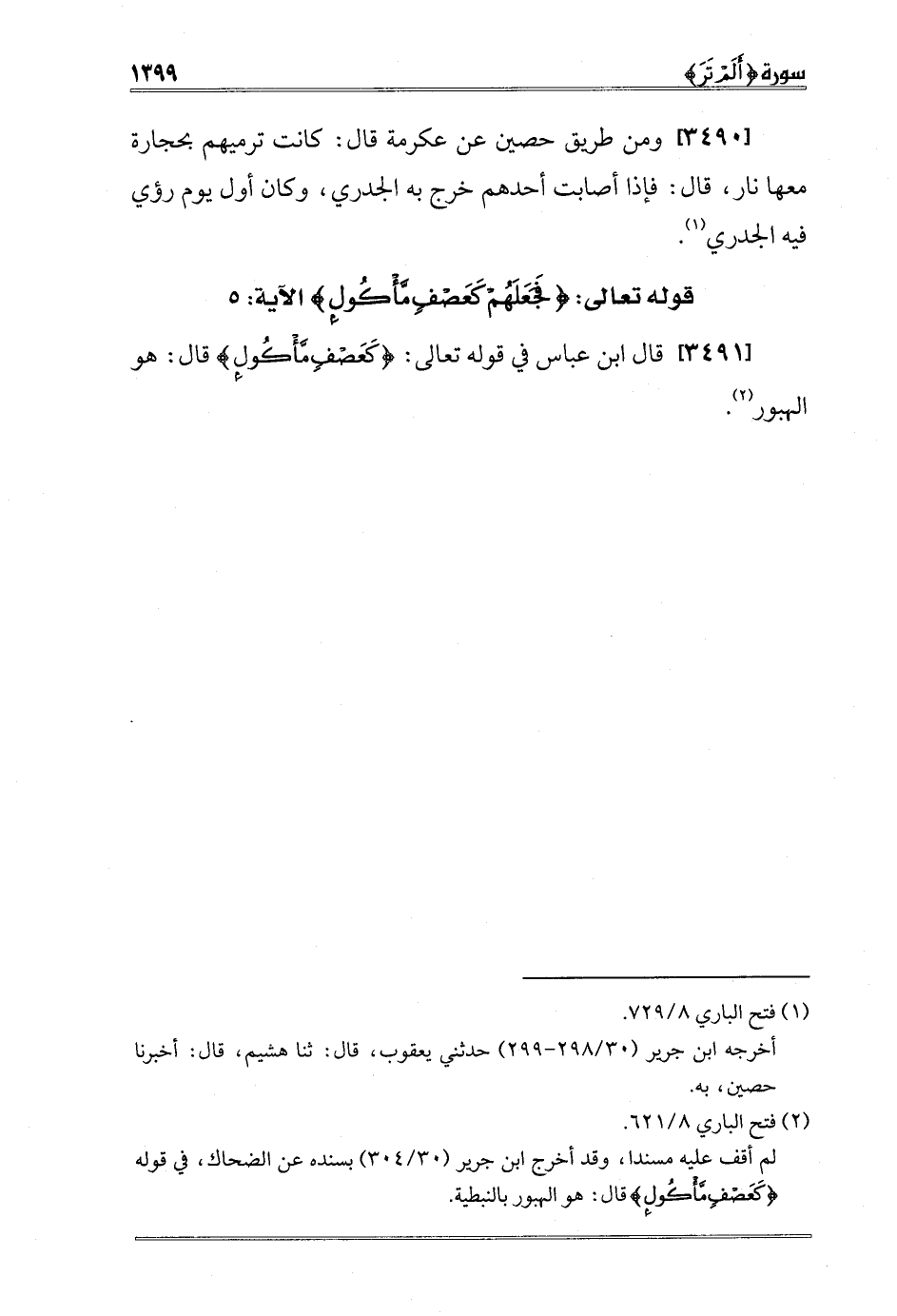 [3491] قال ابن عباس في قوله تعالى: {كَعَصْفٍ مَأْكُولٍ} قال: هو الهبور2.