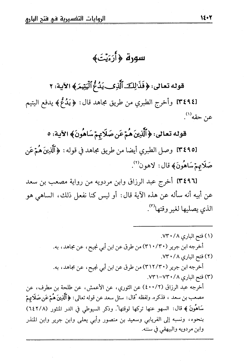 [3495] وصل الطبري أيضا من طريق مجاهد في قوله: {الَّذِينَ هُمْ عَنْ صَلاتِهِمْ سَاهُونَ} قال: لاهون2.