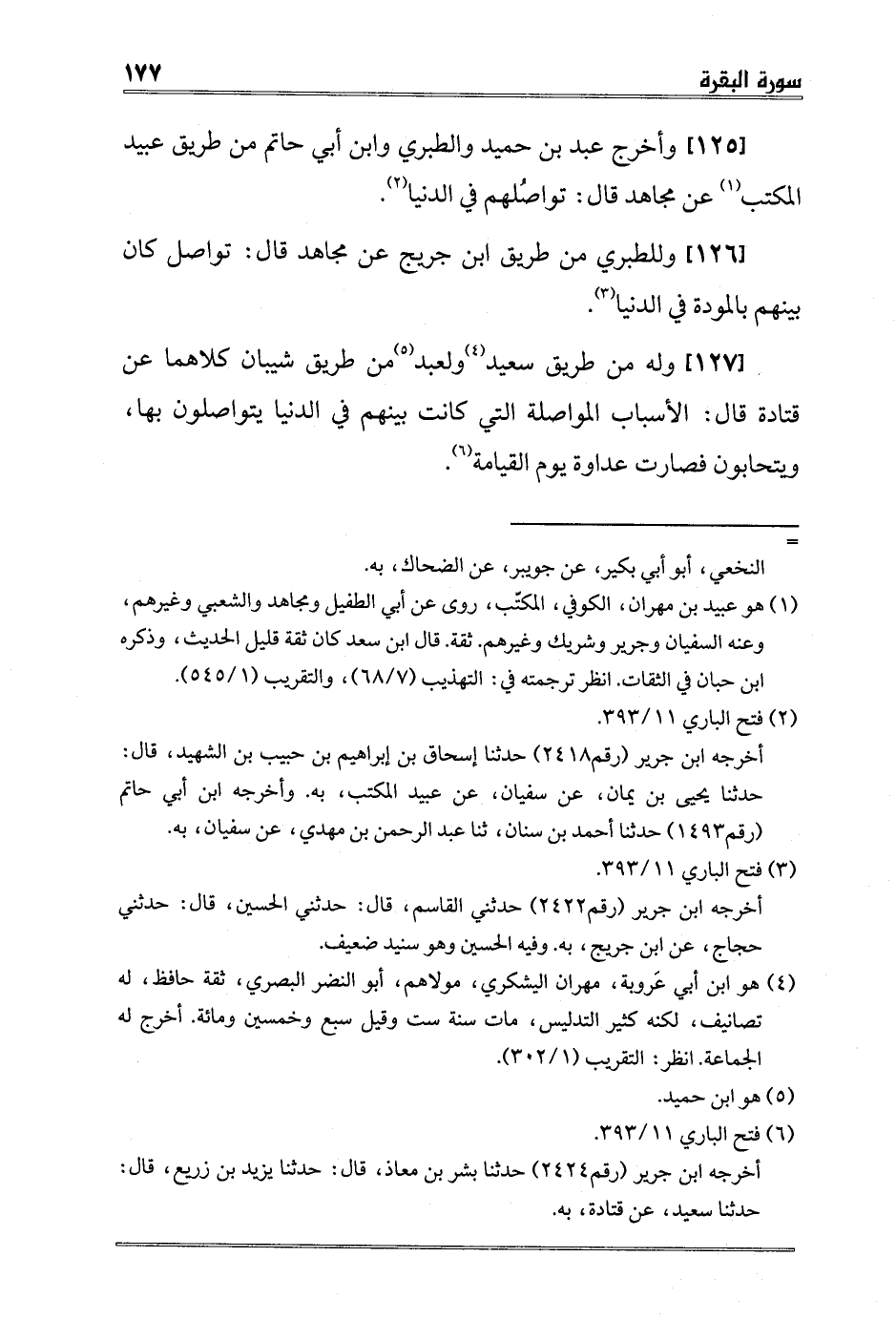 [125] وأخرج عبد بن حميد والطبري وابن أبي حاتم من طريق عبيد المكتب1 عن مجاهد قال: تواصُلهم في الدنيا2.
