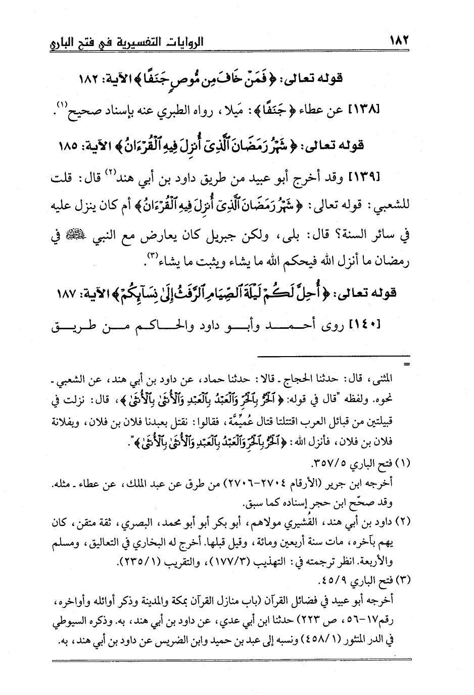 2 داود بن أبي هند، القُشيري مولاهم، أبو بكر أبو أبو محمد، البصري، ثقة متقن، كان يهم بآخره، مات سنة أربعين ومائة، وقيل قبلها. أخرج له البخاري في التعاليق، ومسلم والأربعة. انظر ترجمته في: التهذيب 3/177، والتقريب 1/235.