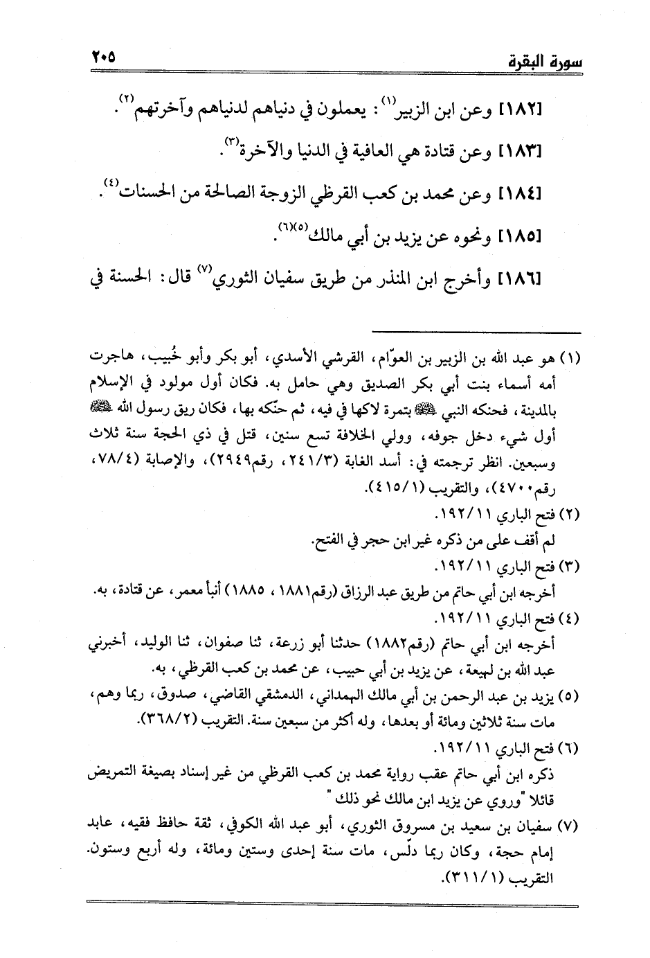 [186] وأخرج ابن المنذر من طريق سفيان الثوري7 قال: الحسنة في