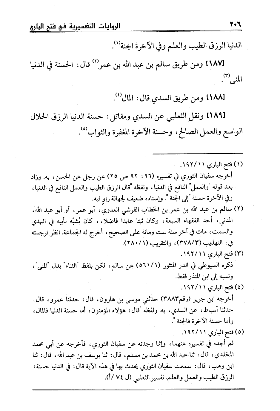 [187] ومن طريق سالم بن عبد الله بن عمر2 قال: الحسنة في الدنيا المنى3.
