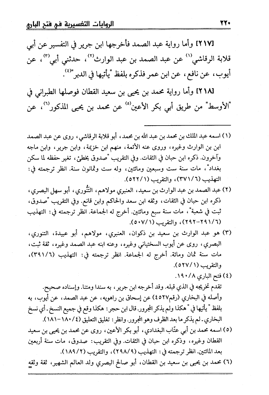 [217] وأما رواية عبد الصمد فأخرجها ابن جرير في التفسير عن أبي قلابة الرقاشي1 عن عبد الصمد بن عبد الوارث2، حدثني أبي3، عن أيوب، عن نافع، عن ابن عمر فذكره بلفظ "يأتيها في الدبر"4.