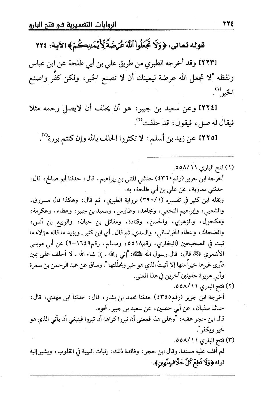 [223] وقد أخرجه الطبري من طريق علي بن أبي طلحة عن ابن عباس ولفظه "لا تجعل الله عرضة ليمينك أن لا تصنع الخير، ولكن كفِّر واصنع الخير1.