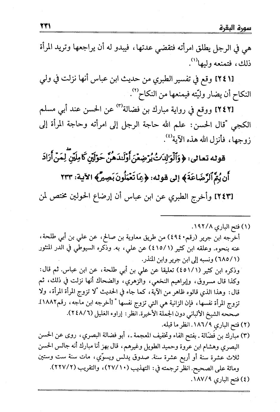 [243] وأخرج الطبري عن ابن عباس أن إرضاع الحولين مختص لمن