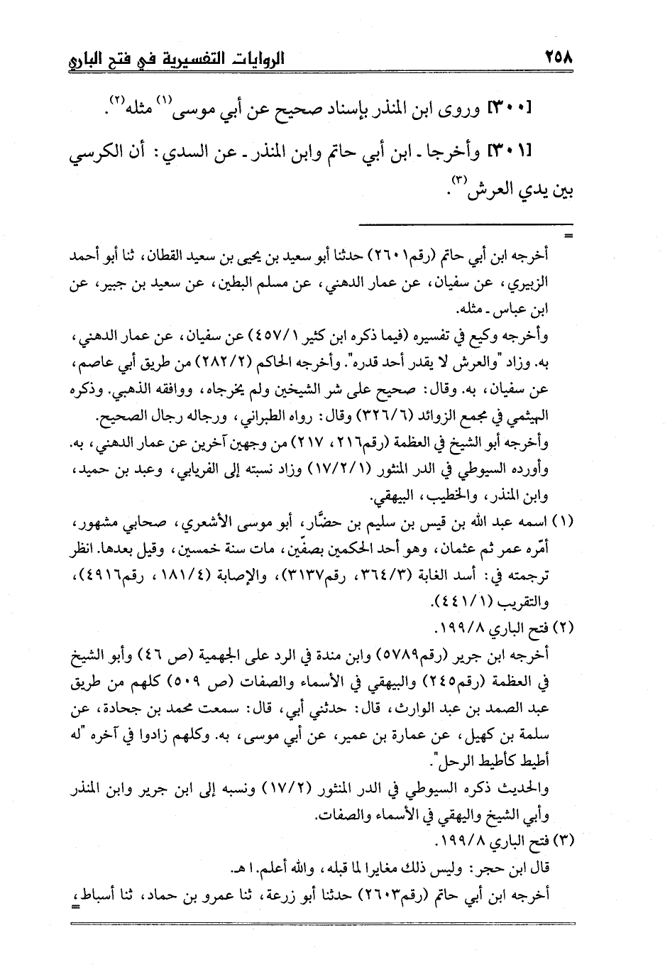 [301] وأخرجا - ابن أبي حاتم وابن المنذر - عن السدي: أن الكرسي بين يدي العرش3.