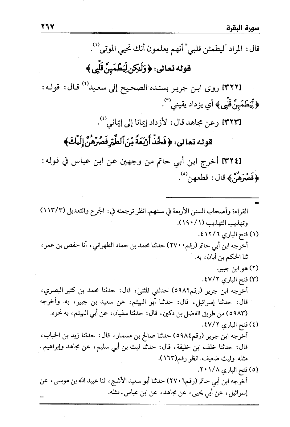 [322] روى ابن جرير بسنده الصحيح إلى سعيد2 قال: قوله: {لِيَطْمَئِنَّ قَلْبِي} أي يزداد يقيني3.