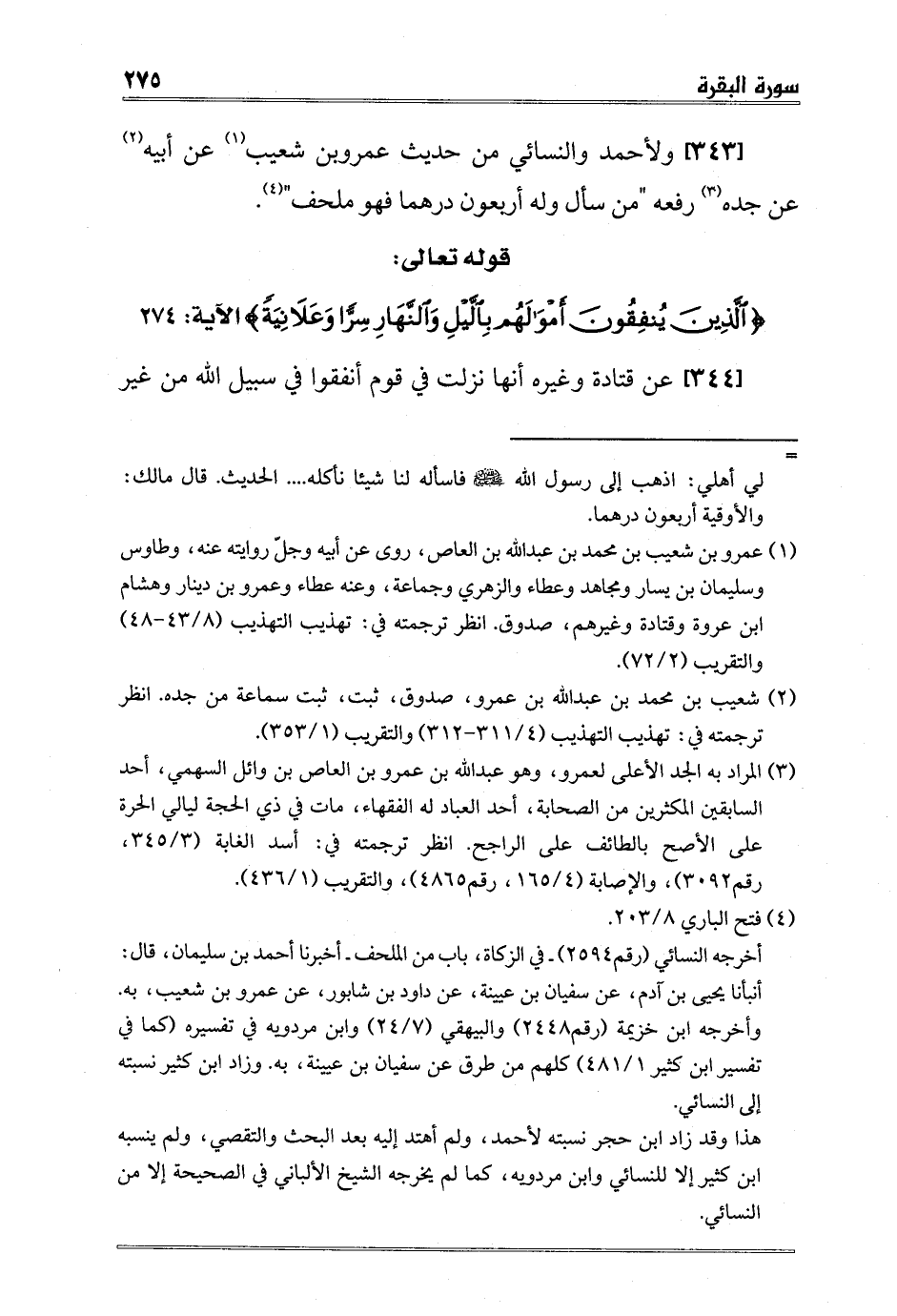 [343] ولأحمد والنسائي من حديث عمروبن شعيب1 عن أبيه2 عن جده3 رفعه "من سأل وله أربعون درهما فهو ملحف" 4.