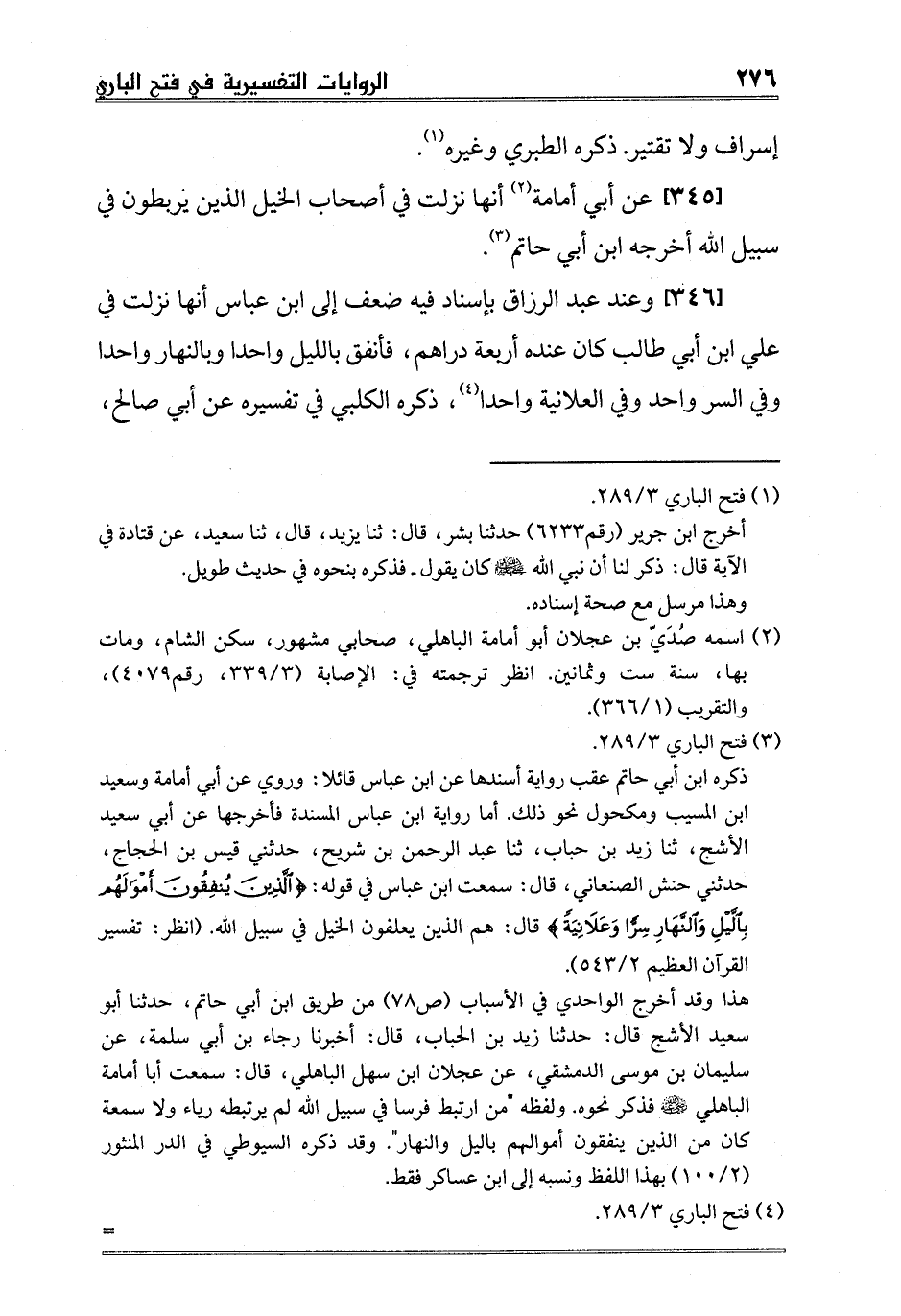 [345] عن أبي أمامة2 أنها نزلت في أصحاب الخيل الذين يربطون في سبيل الله أخرجه ابن أبي حاتم3.