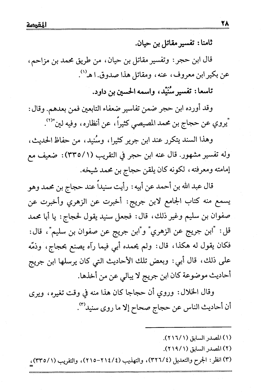 وهذا السند يتكرر عند ابن جرير كثيرا، وسُنيد، من حفاظ الحديث، وله تفسير مشهور. قال عنه ابن حجر في التقريب 1/335: ضعيف مع إمامته ومعرفته، لكونه كان يلقن حجاج بن محمد شيخه.