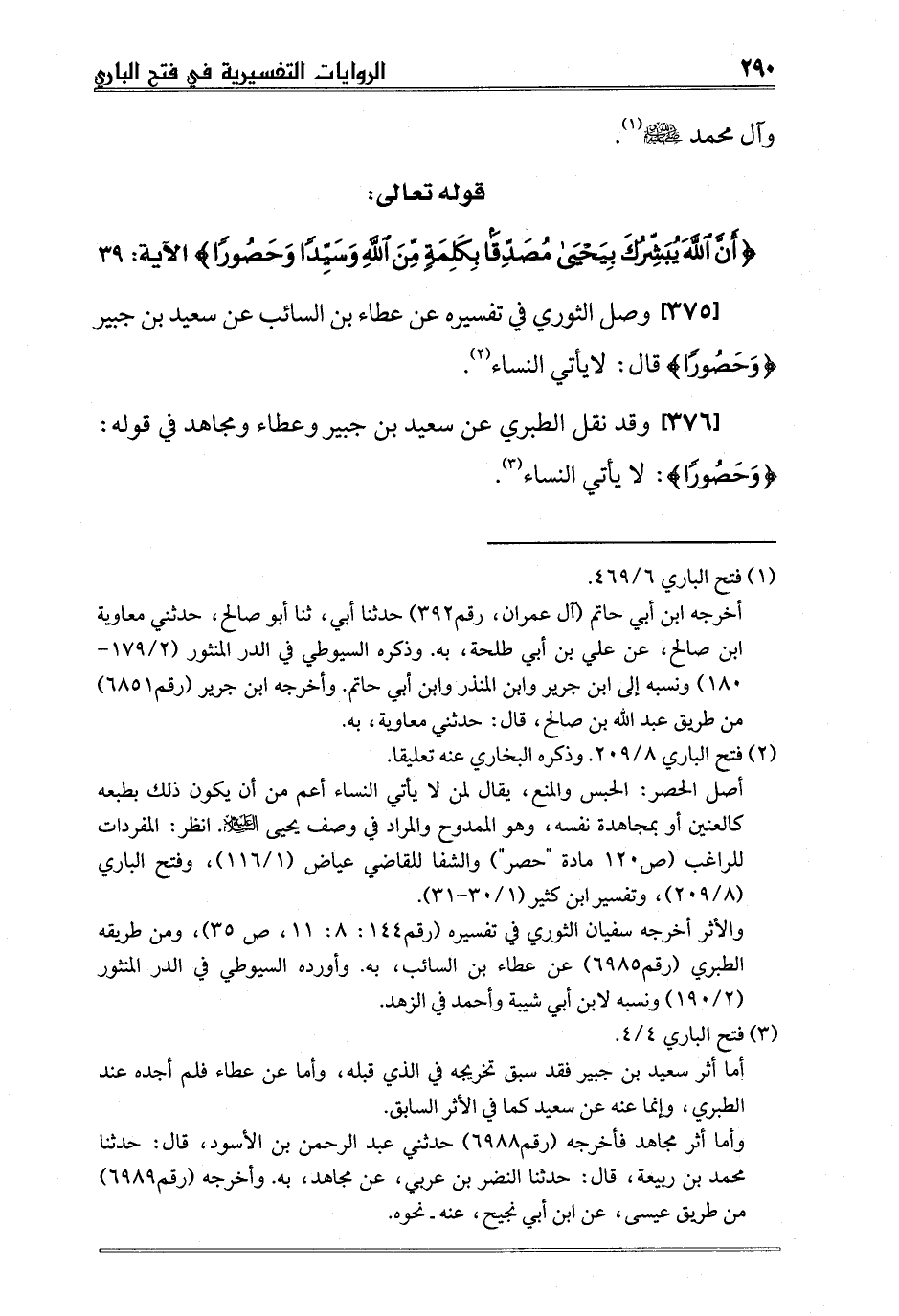 [375] وصل الثوري في تفسيره عن عطاء بن السائب عن سعيد بن جبير {وَحَصُوراً} قال: لايأتي النساء2.