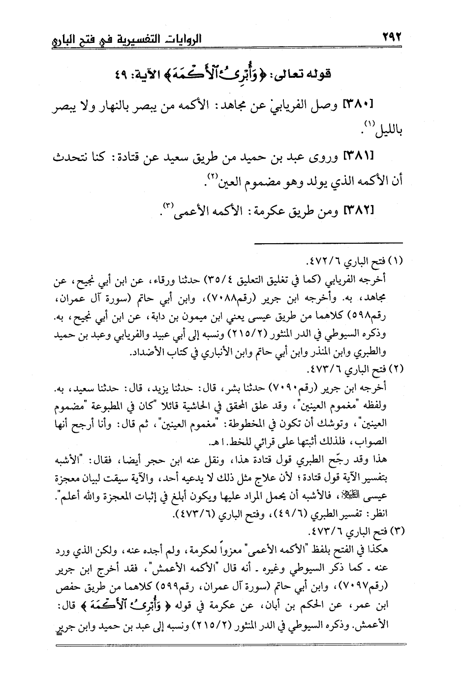 [380] وصل الفريابي عن مجاهد: الأكمه من يبصر بالنهار ولا يبصر بالليل1.
