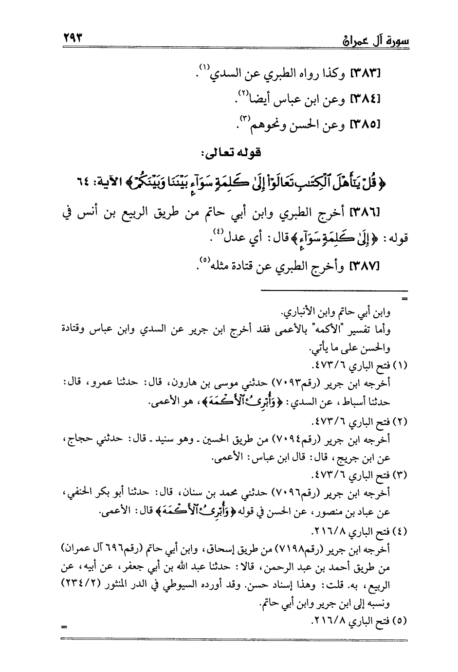 [386] أخرج الطبري وابن أبي حاتم من طريق الربيع بن أنس في قوله: {إِلَى كَلِمَةٍ سَوَاءٍ} قال: أي عدل4.