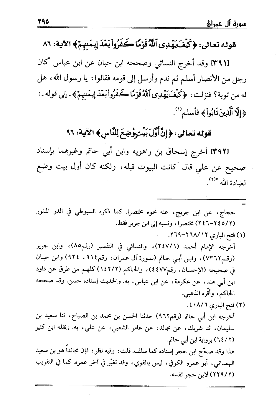 أخرجه الإمام أحمد 1/247، والنسائي في التفسير رقم85، وابن جرير رقم7362، وابن أبي حاتم سورة آل عمران، رقم914، 924 وابن حبان في صحيحه الإحسان، رقم4477، والحاكم 2/142 كلهم من طرق عن داود ابن أبي هند، عن عكرمة، عن ابن عباس، به. والحديث إسناده حسن. وقد صححه الحاكم، وأقّره الذهبي.