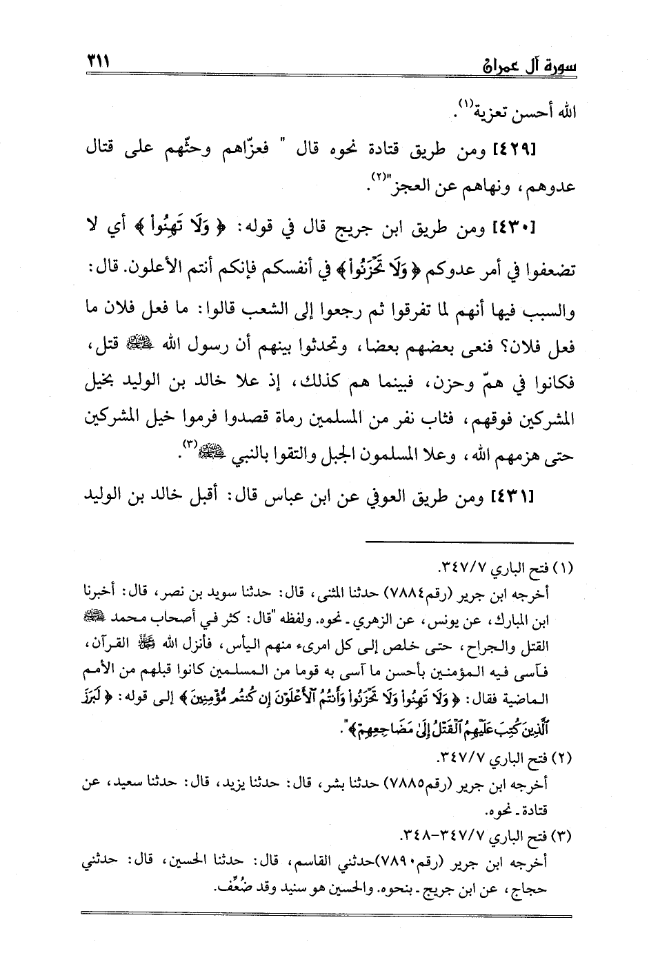 أخرجه ابن جرير رقم7885 حدثنا بشر، قال: حدثنا يزيد، قال: حدثنا سعيد، عن قتادة - نحوه.