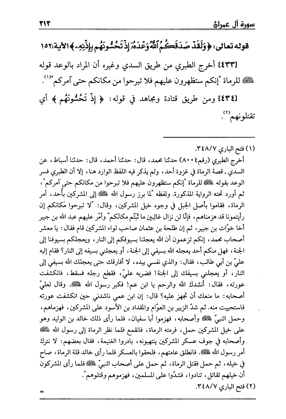 2 فتح الباري 7/348. أما أثر قتادة فأخرجه ابن جرير رقم8013 حدثنا بشر، قال: حدثنا يزيد، قال: حدثنا سعيد، عن قتادة - نحوه. ولفظه قال: " {وَلَقَدْ صَدَقَكُمُ اللَّهُ وَعْدَهُ إِذْ تَحُسُّونَهُمْ بِإِذْنِهِ} أي قتلا بإذنه".