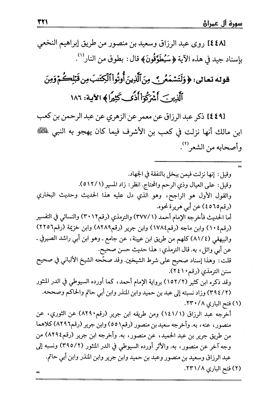 2 فتح الباري 8/231. هكذا ذكره عن عبد الرحمن بن كعب بن مالك، ولم أجده عند عبد الرزاق عنه، وإنما وجدته موقوفا على الزهرير. انظر: تفسير عبد الرزاق 1/142. وذكره السيوطي في الدر المنثور 2/401 وعزاه لابن جرير وابن أبي حاتم عن الزهري، ثم قال - أي السيوطي - وأخرج ابن المنذر من طريق الزهري عن عبد الرحمن بن كعب بن مالك مثله. اهـ.