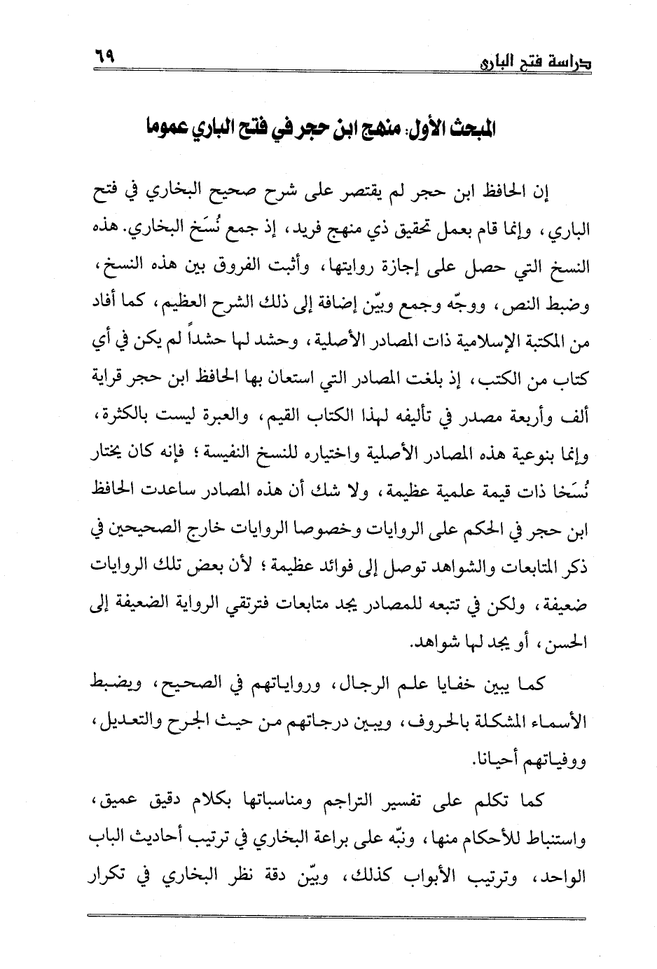 المبحث الأول: منهج ابن حجر في فتح الباري عموما