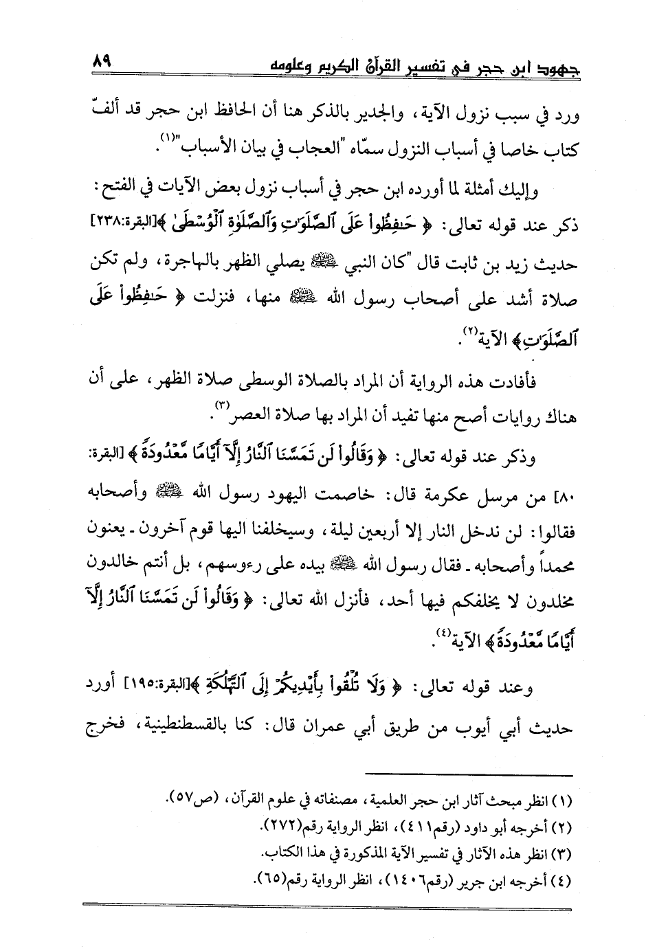 1 انظر مبحث آثار ابن حجر العلمية، مصنفاته في علوم القرآن، ص57.