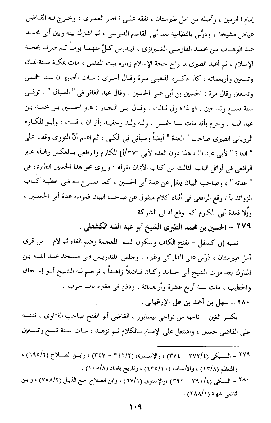 279 - الحسين بن محمد الطبرى الشيخ أبو عبد اللَّه الكشفلى.