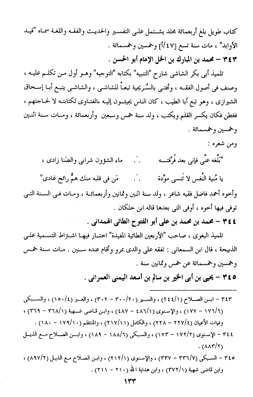 343 - ابن الصلاح (1/ 244)، والسير (20/ 300 - 302)، والعبر (4/ 150)، والسبكى (6/ 176 - 177)، والإسنوى (1/ 486 - 487)، وابن قاضى شهبة (1/ 368 - 369)، وفيات الأعيان (4/ 227 - 228)، والكامل (11/ 217)، والمنتظم (10/ 179 - 180).