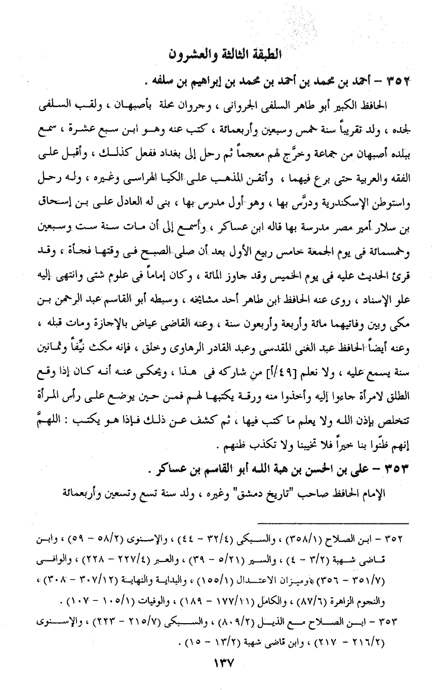 353 - ابن الصلاح مع الذيل (2/ 809)، والسبكى (7/ 215 - 223)، والإسنوى (2/ 216 - 217)، وابن قاضى شهبة (2/ 13 - 15).
