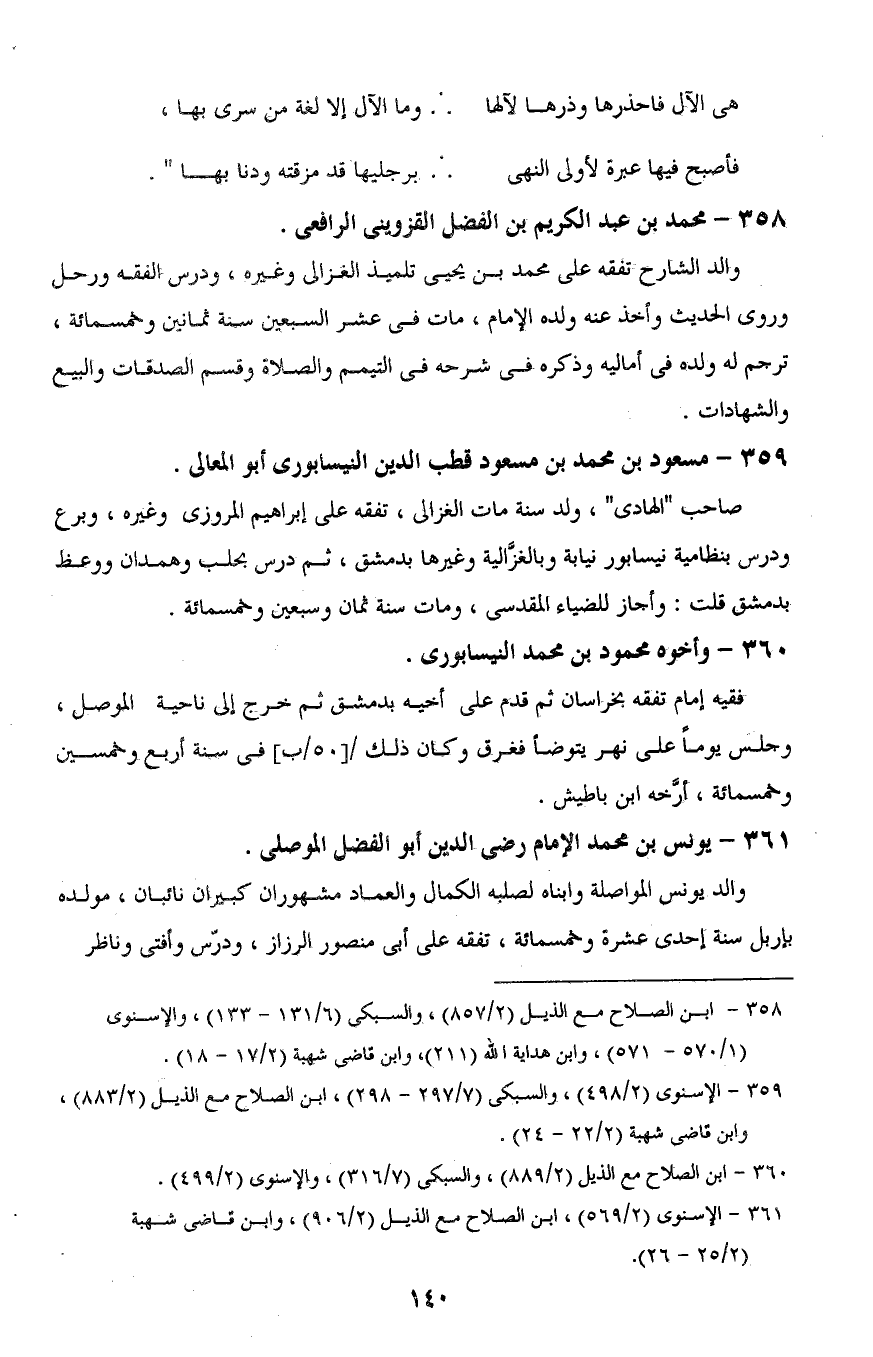 360 - ابن الصلاح مع الذيل (2/ 889)، والسبكى (7/ 316)، والإسنوى (2/ 499).