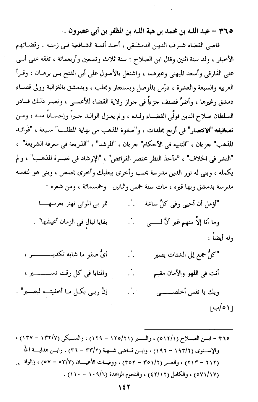 365 - ابن الصلاح (1/ 512)، والسير (21/ 125 - 129)، والسبكى (7/ 132 - 137)، والإسنوى (2/ 193 - 196)، وابن قاضى شهبة (2/ 33 - 36)، وابن هداية اللَّه (212 - 213)، والعبر (2/ 351 - 352)، ووفيات الأعيان (3/ 53 - 57)، والوافى (17/ 571)، والكامل (12/ 42)، والنجوم الزاهدة (6/ 109 - 110).