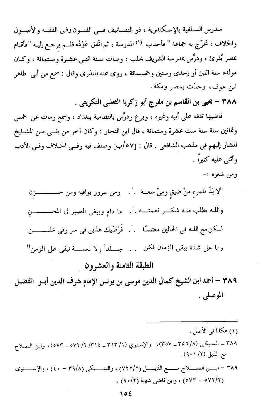 389 - ابن الصلاح مع الذيل (2/ 722)، والسبكى (8/ 39 - 40)، والإسنوى (2/ 572 - 573)، وابن قاضى شهبة (2/ 90).