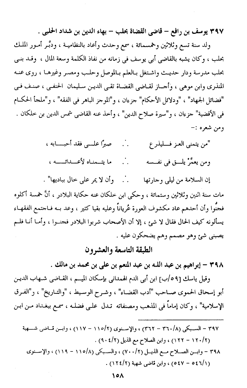 397 يوسف بن رافع -قاضى القضاة بحلب- بهاء الدين بن شداد الحلبى.