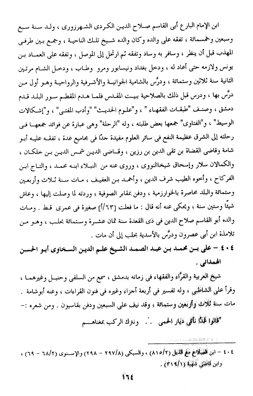 404 - على بن محمد بن عبد الصمد الشيخ علم الدين السخاوى أبو الحسن الهمدانى.