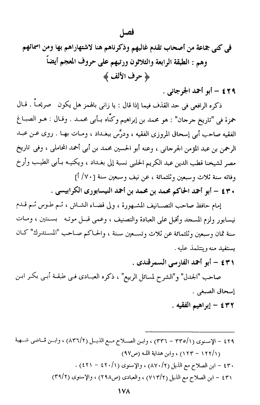 431 - ابن الصلاح مع الذيل (2/ 713)، والعبادى (ص 298)، والإسنوى (2/ 39).