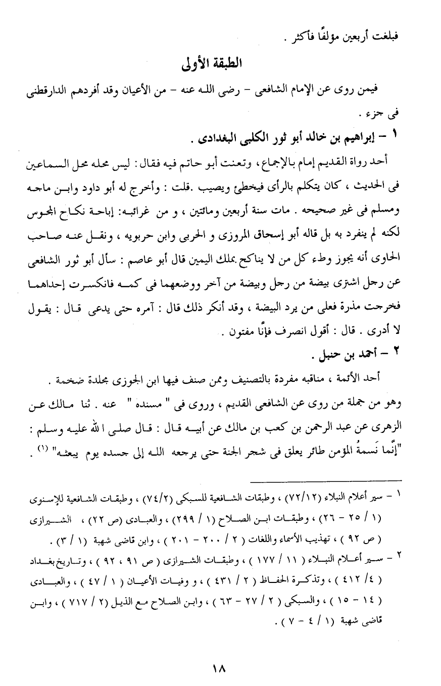 2 - سير أعلام النبلاء (11/ 177)، وطبقات الشيرازى (ص 91، 92)، وتاريخ بغداد (4/ 412)، وتذكرة الحفاظ (2/ 431)، ووفيات الأعيان (1/ 47)، والعبادى (14 - 15)، والسبكى (2/ 27 - 63)، وابن الصلاح مع الذيل (2/ 717)، وابن قاضى شهبة (1/ 4 - 7).